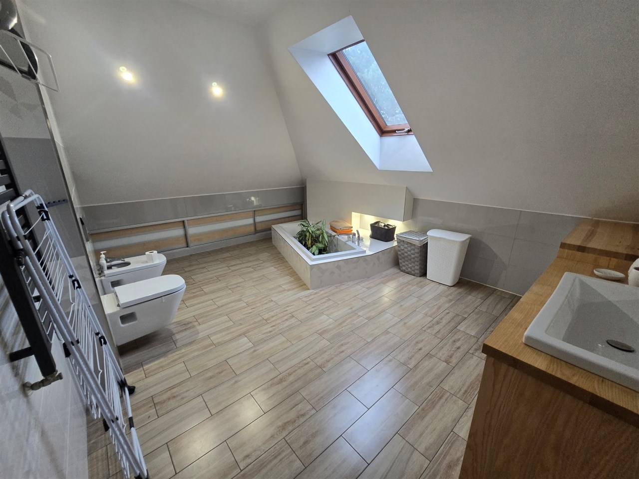 Na górze mamy do dyspozycji dużą łazienkę z wanną.