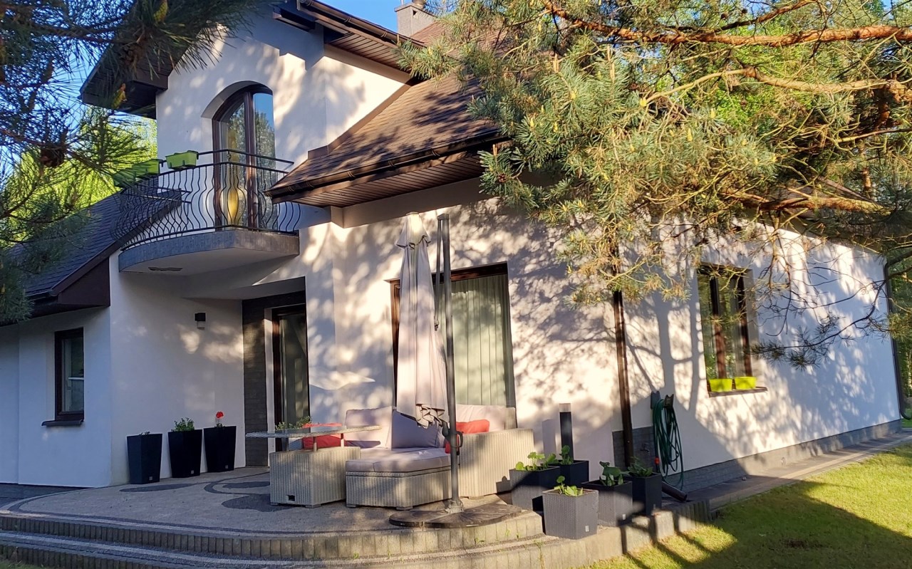 Cisza, spokój, szum lasu i śpiew ptaków gwarantują komfort mieszkańców domu. Sąsiedztwo stanowią tylko 3 nowe domy wolnostojące.