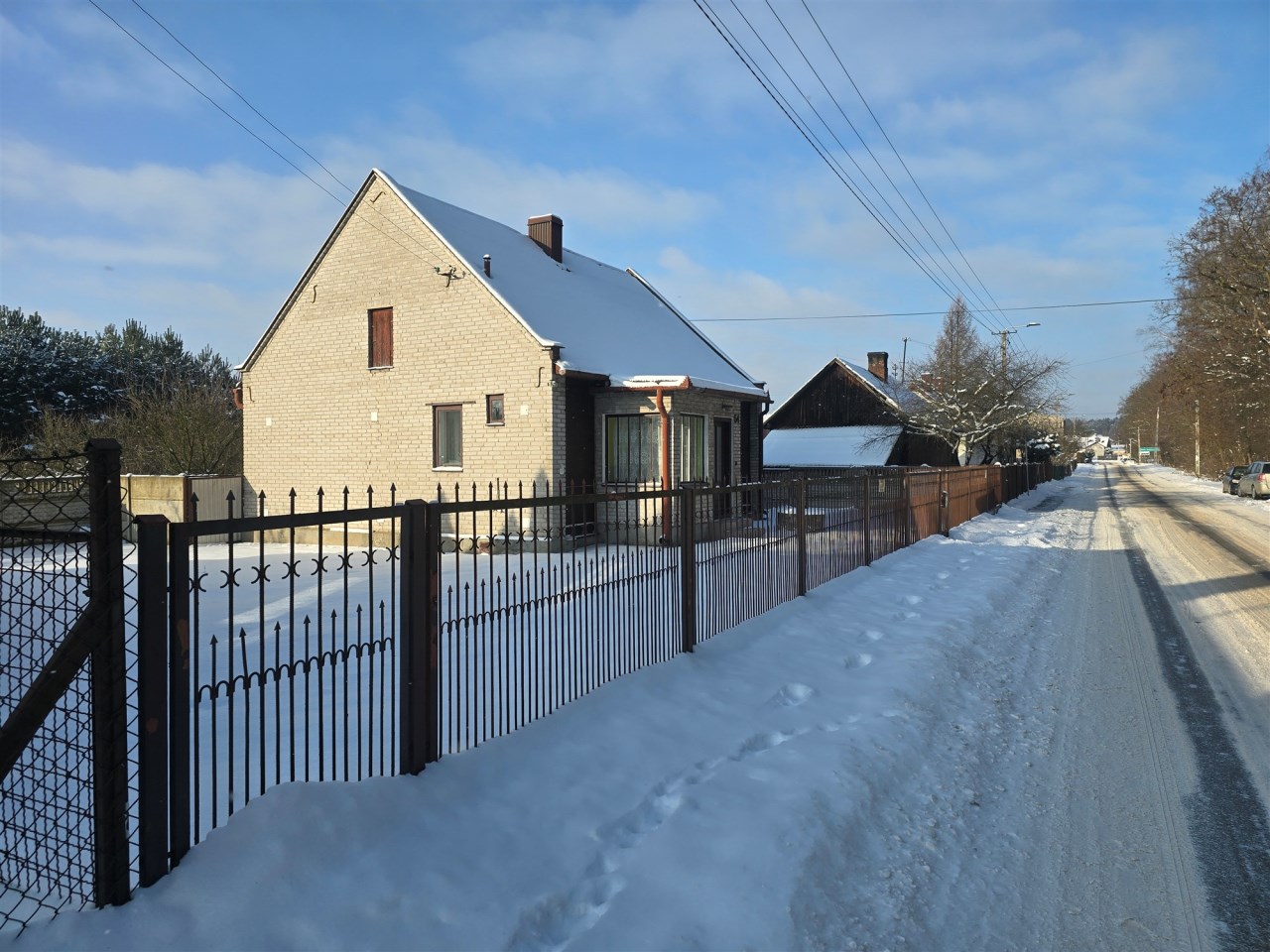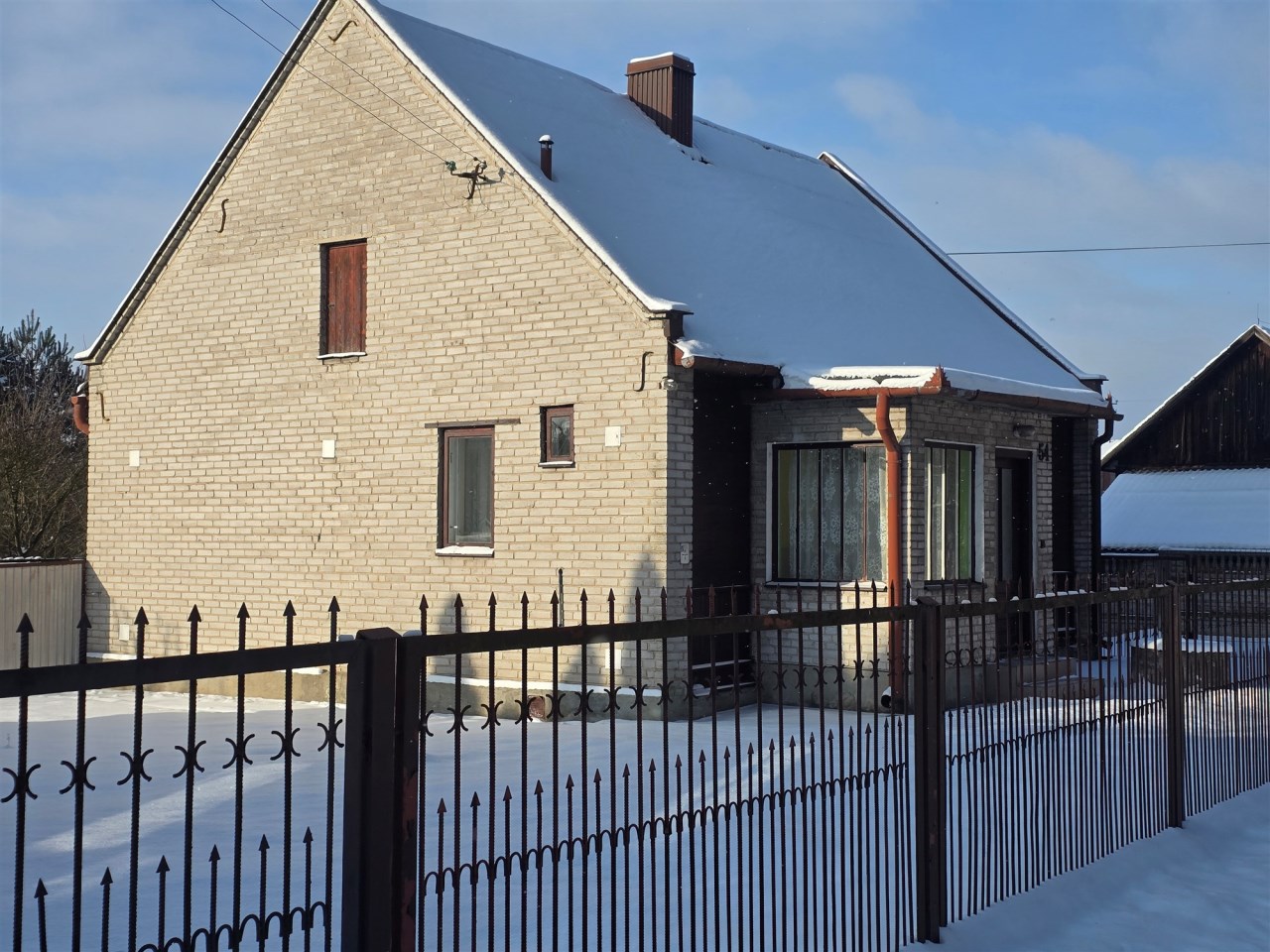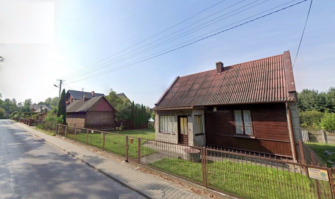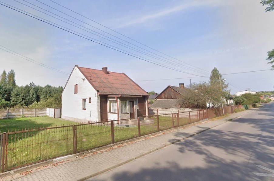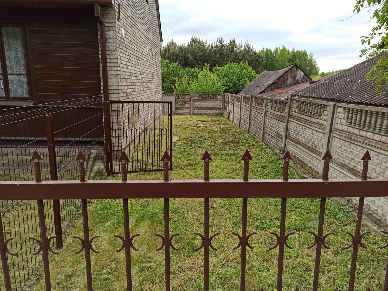 Działka ogrodzona, ściany boczne domu murowane z białej cegły, pozostałe 2 ściany solidne z elewacją z desek, dach kryty eternitem. Brama wjazdowa, która prowadzi na tył posesji.