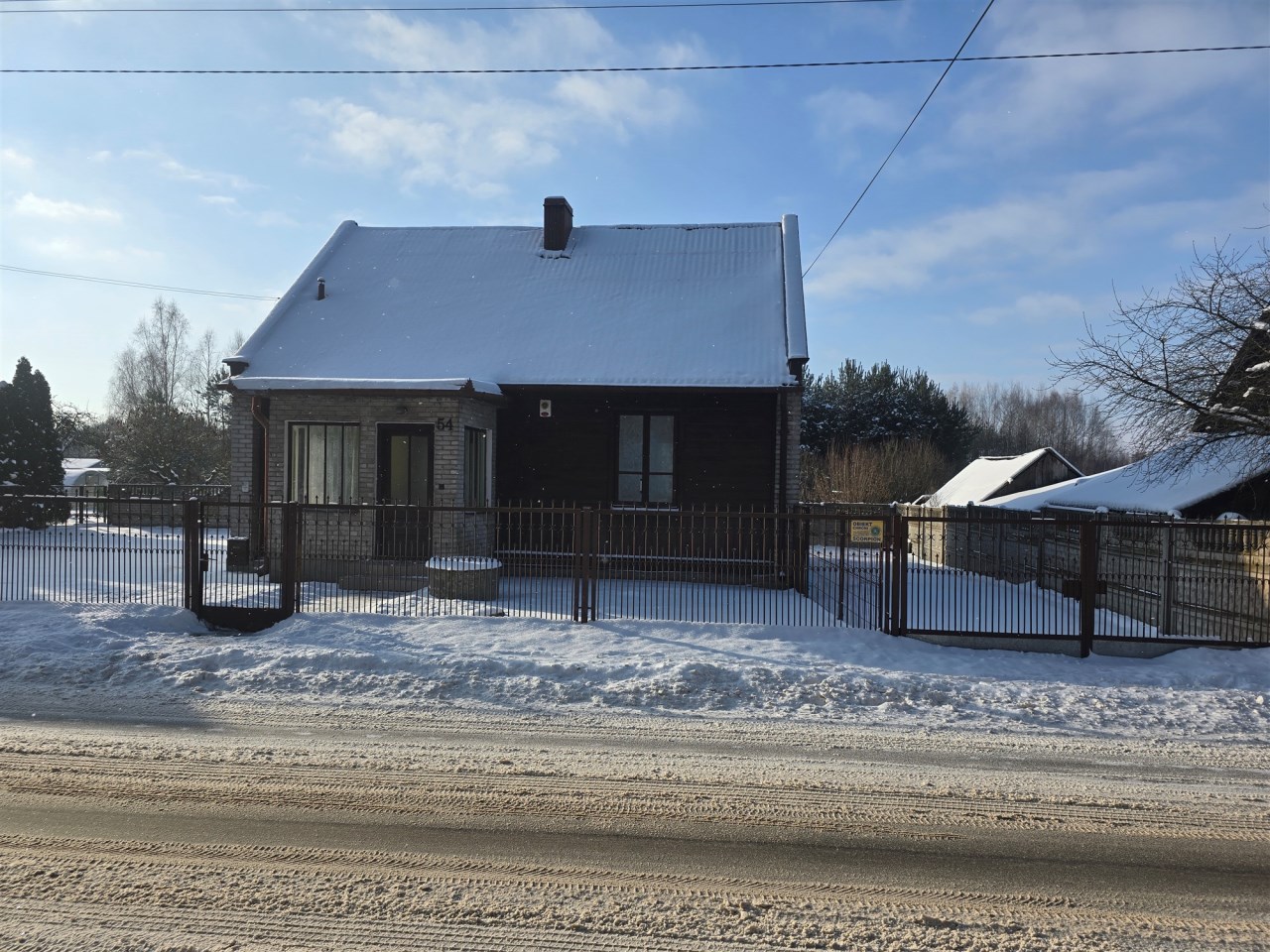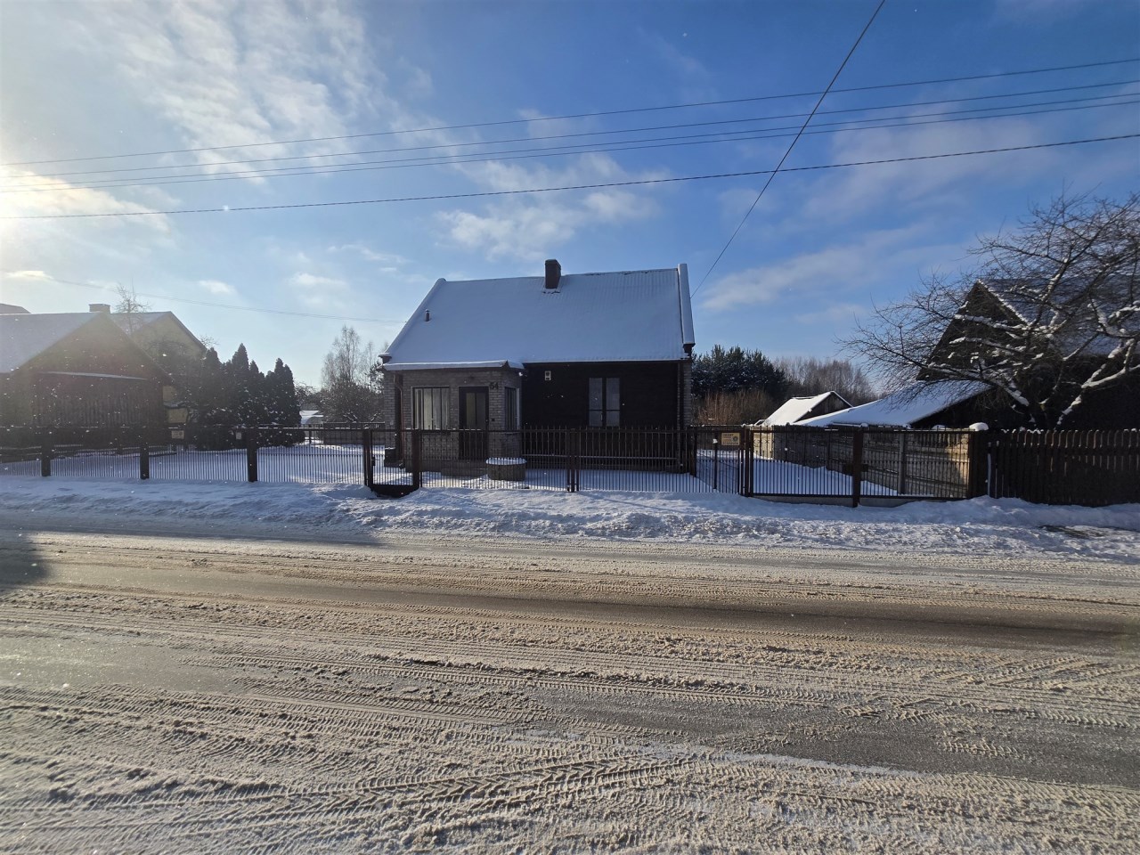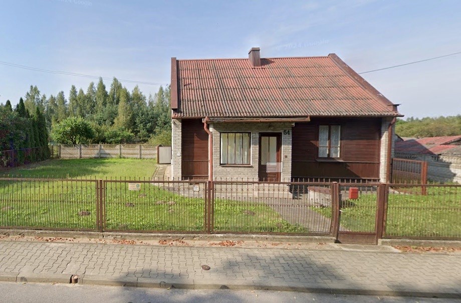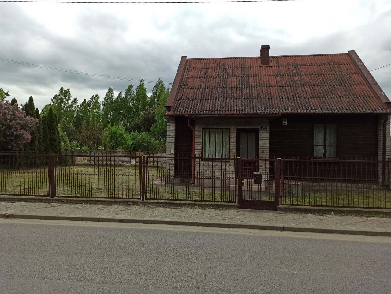 Działka ogrodzona, ściany boczne domu murowane z białej cegły, pozostałe 2 ściany solidne z elewacją z desek, dach kryty eternitem. Brama wjazdowa, która prowadzi na tył posesji.