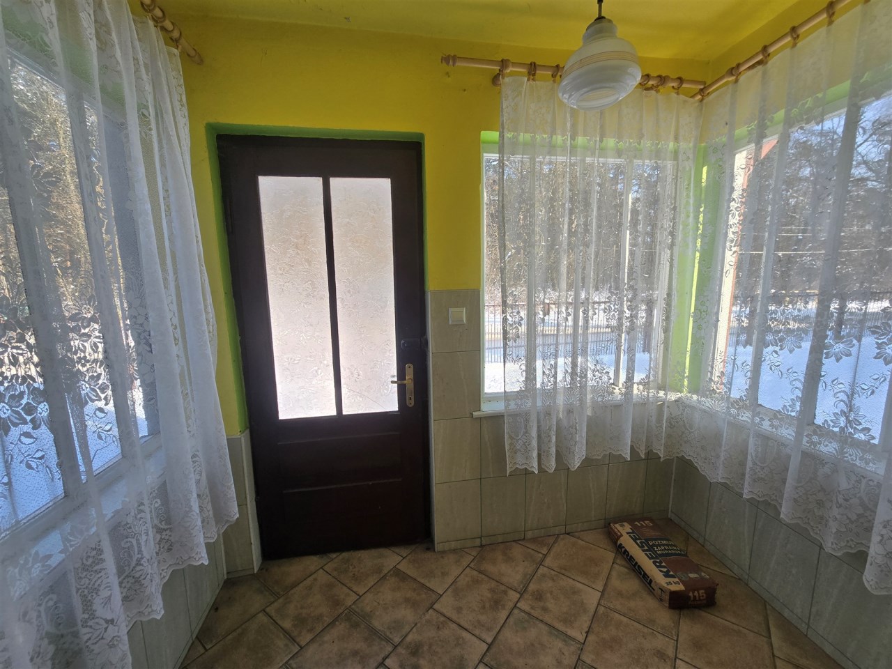 Ogrzewanie piecem na drewno-węgiel z płaszczem wodnym (kaloryfery w każdym pomieszczeniu), solidne podłogi z desek, okna stare drewniane do wymiany.