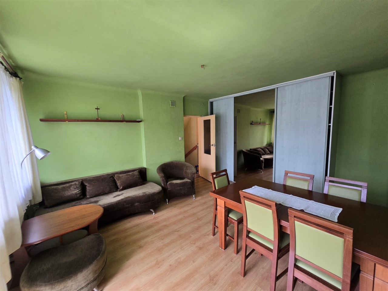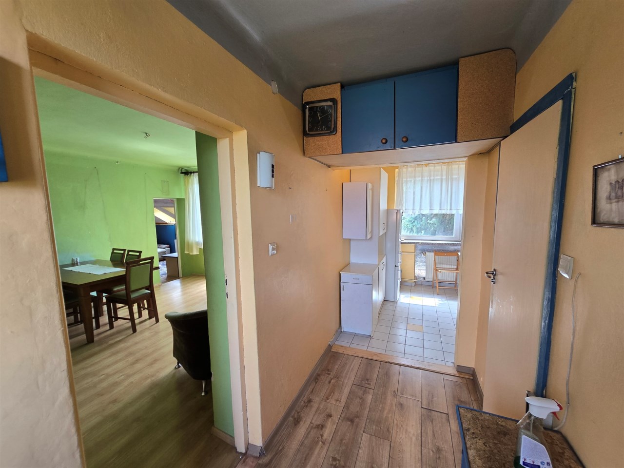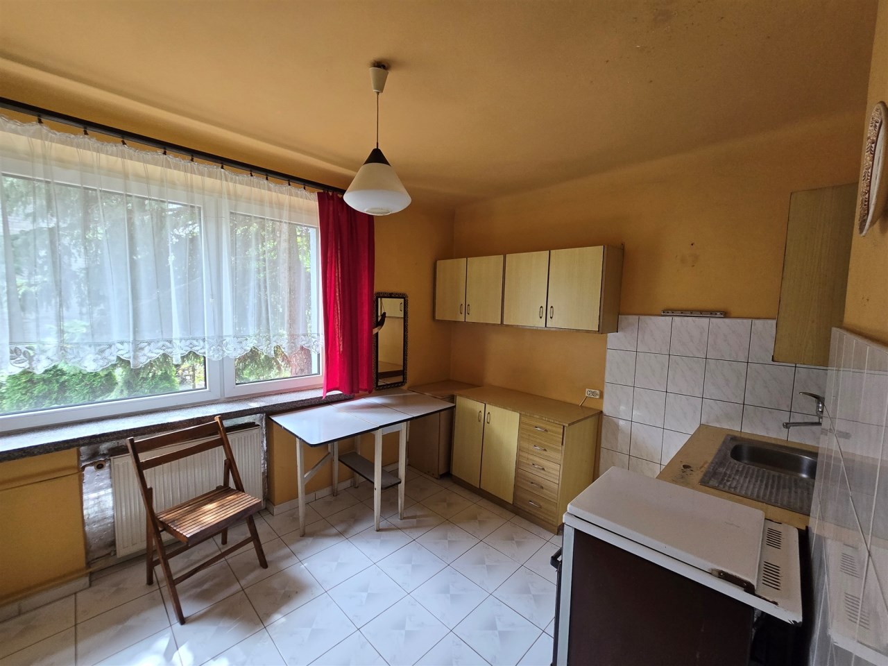 Wysoki parter domu stanowią 3 pokoje, kuchnia i WC, na piętrze kolejne 3 pokoje, druga kuchnia, łazienka.