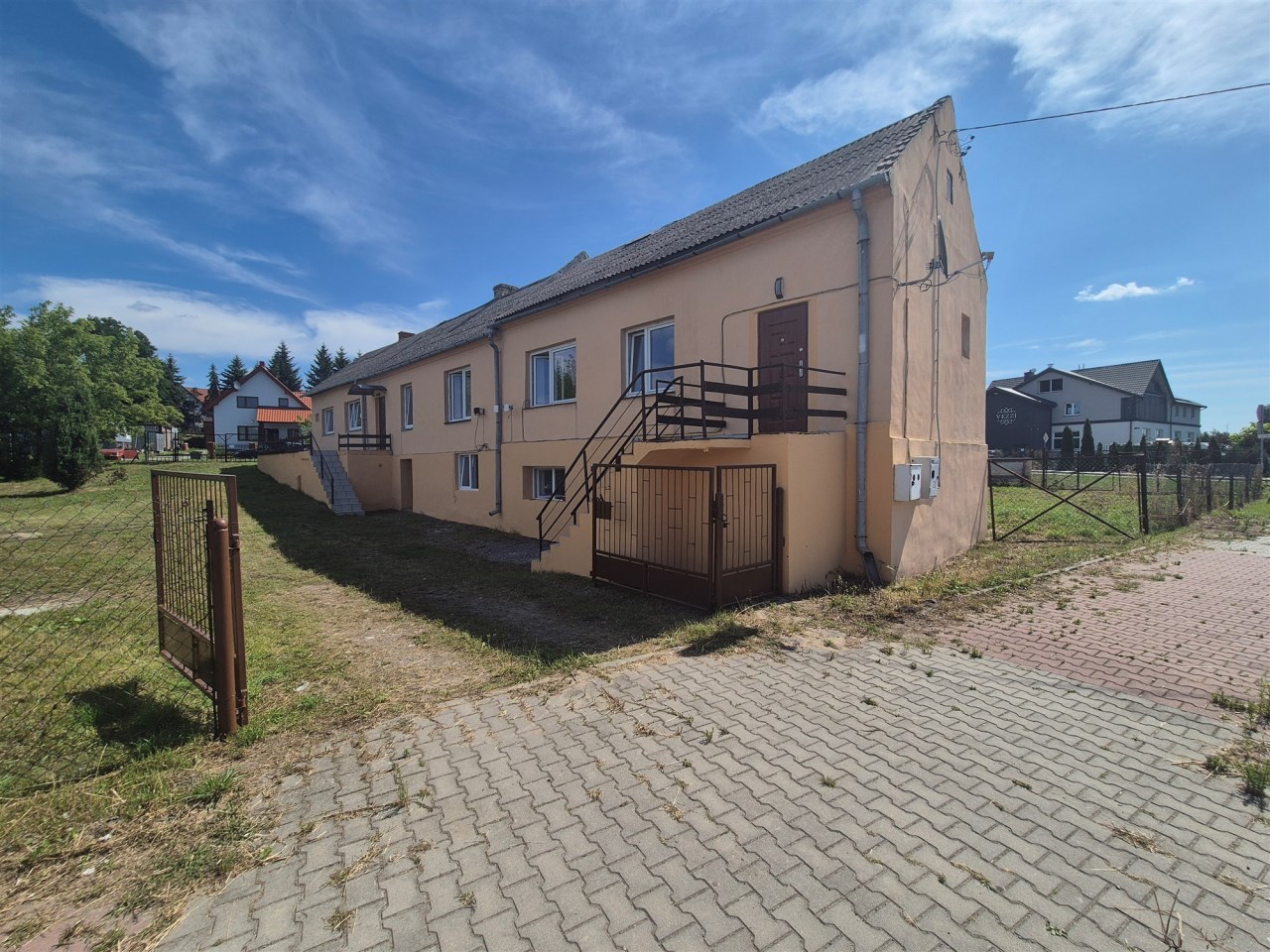 Dom wielorodzinny o pow. całkowitej 187 m2 z wyodrębnionymi 3-ma mieszkaniami o powierzchniach 56, 58, 58 m2. Jedno mieszkanie znajduje się na parterze budynku, dwa kolejne na pierwszym piętrze, do każdego mieszkania prowadzą drzwi zewnętrzne. Mieszkania jednostronne wystawą okien w kierunku południowo-zachodnim.
