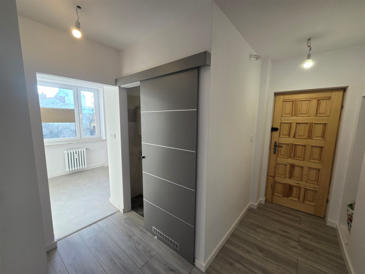 Mieszkanie po generalnym remoncie, wymieniono wszystkie instalacje, położono nowe płytki i panele, na ścianach gładzie, okna PCV, nowe drewniane drzwi zewnętrzne.