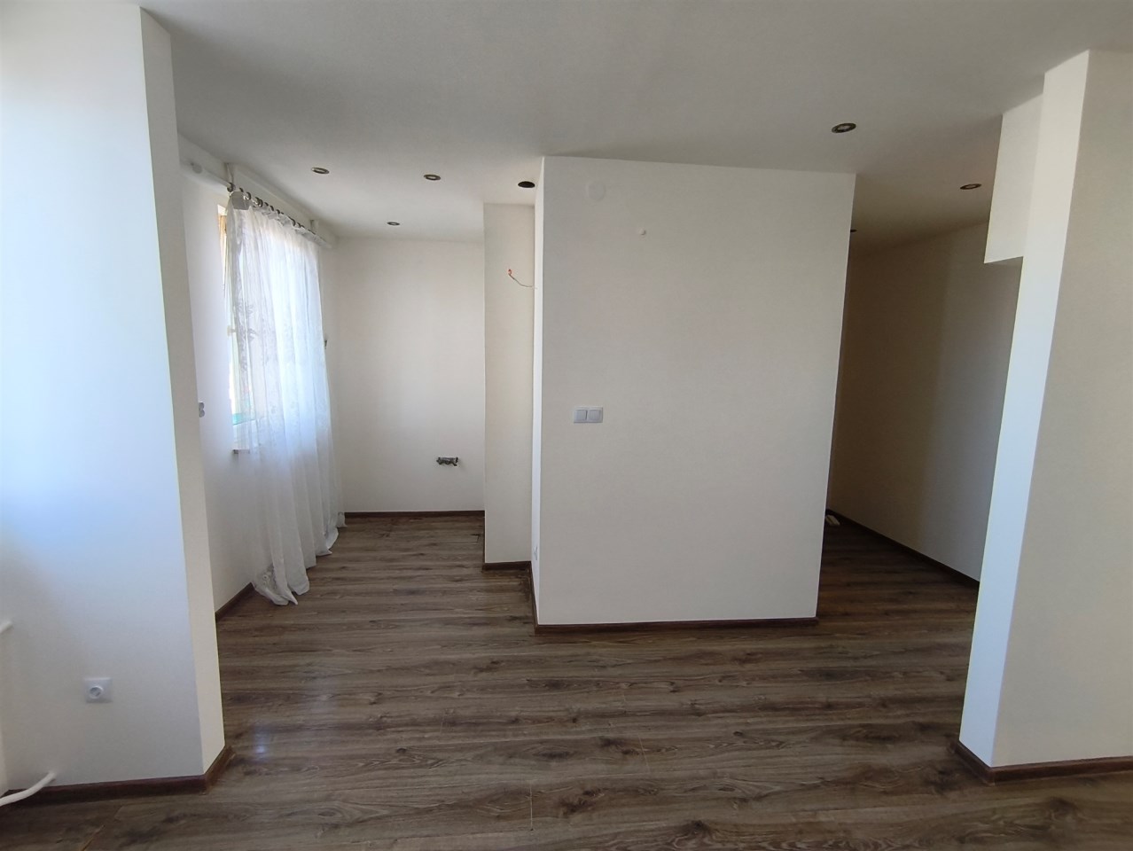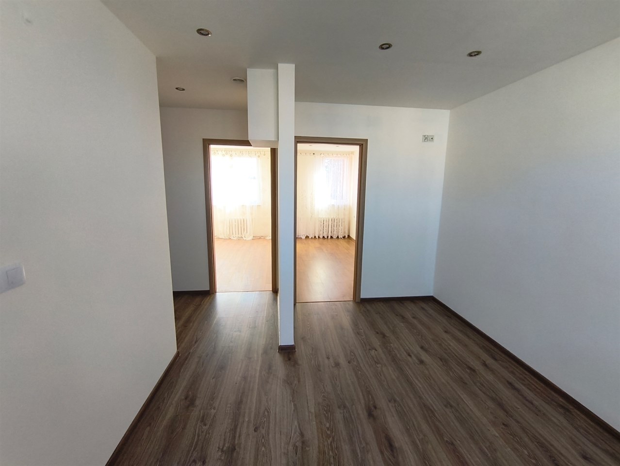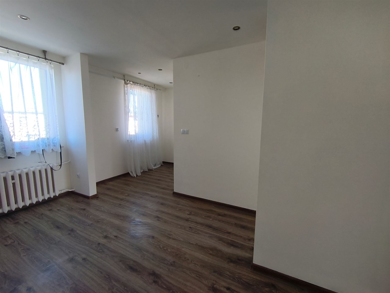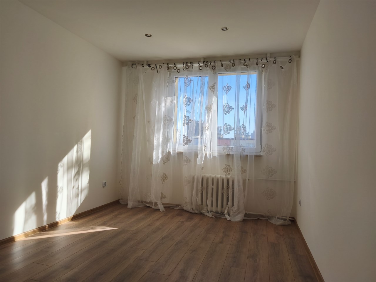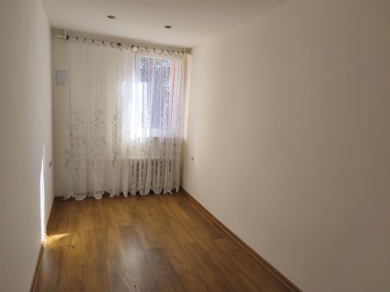 Mieszkanie po odświeżeniu, okna PCV, na podłogach panele, na ścianach gładzie.