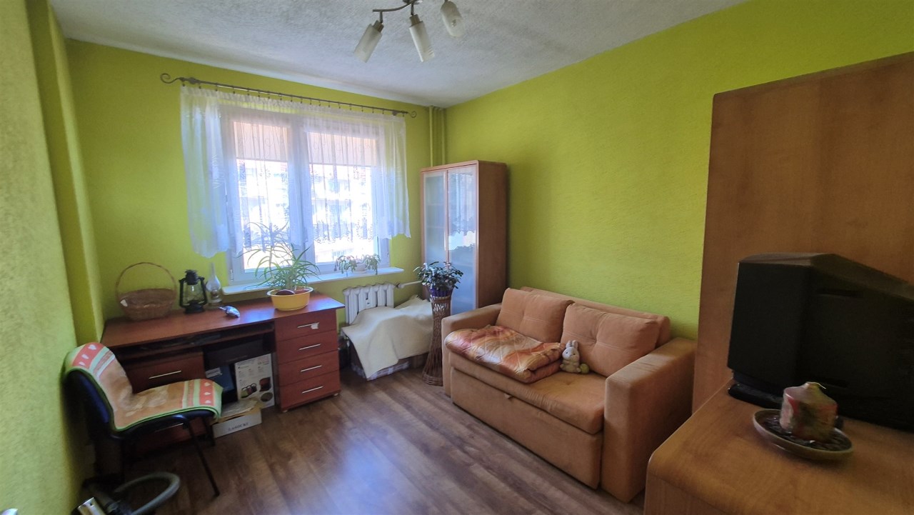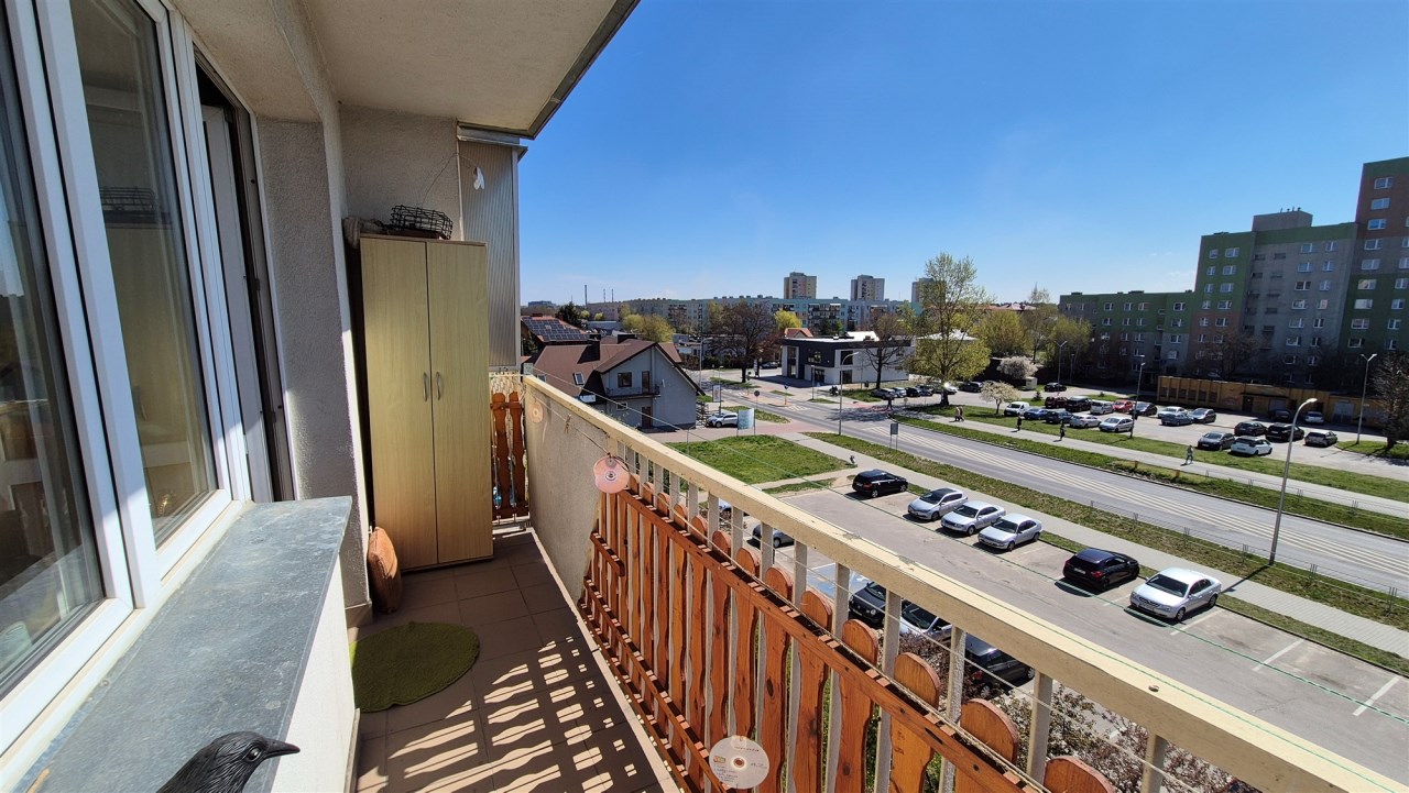 Mieszkanie dwustronne (ekspozycja okien Północ-południe) składa się z dwóch pokoi (jeden z balkonem), kuchni, łazienki z wc oraz przedpokoju.
