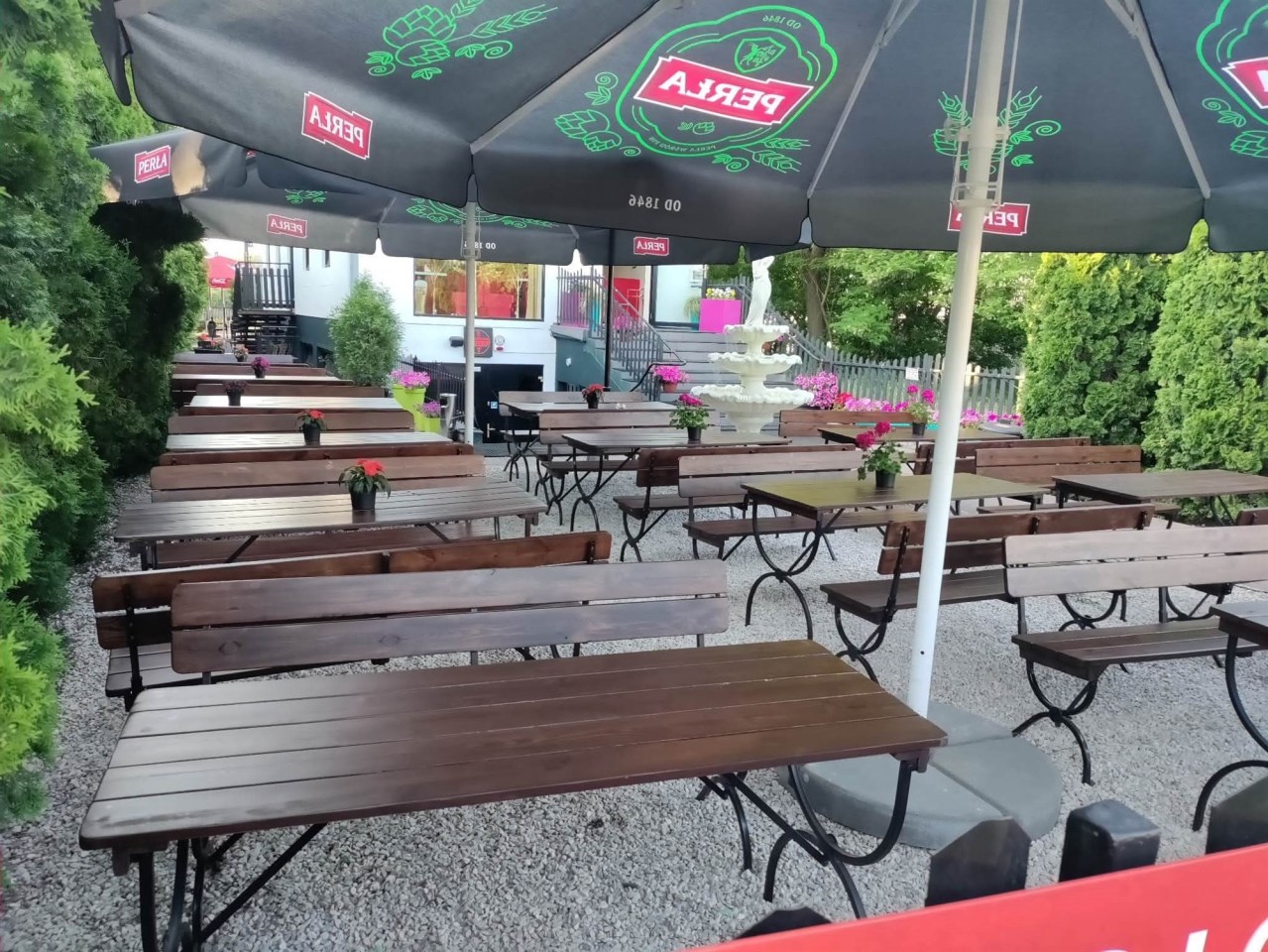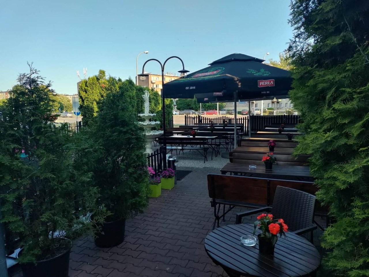 Duża powierzchnia ogródków gastronomicznych (przed oraz za budynkiem (od strony Ul. Bałtowskiej), 2 wjazdy, od ul. Bałtowskiej oraz Jana Pawła II (od strony osiedli mieszkaniowych (wraz z parkingiem).